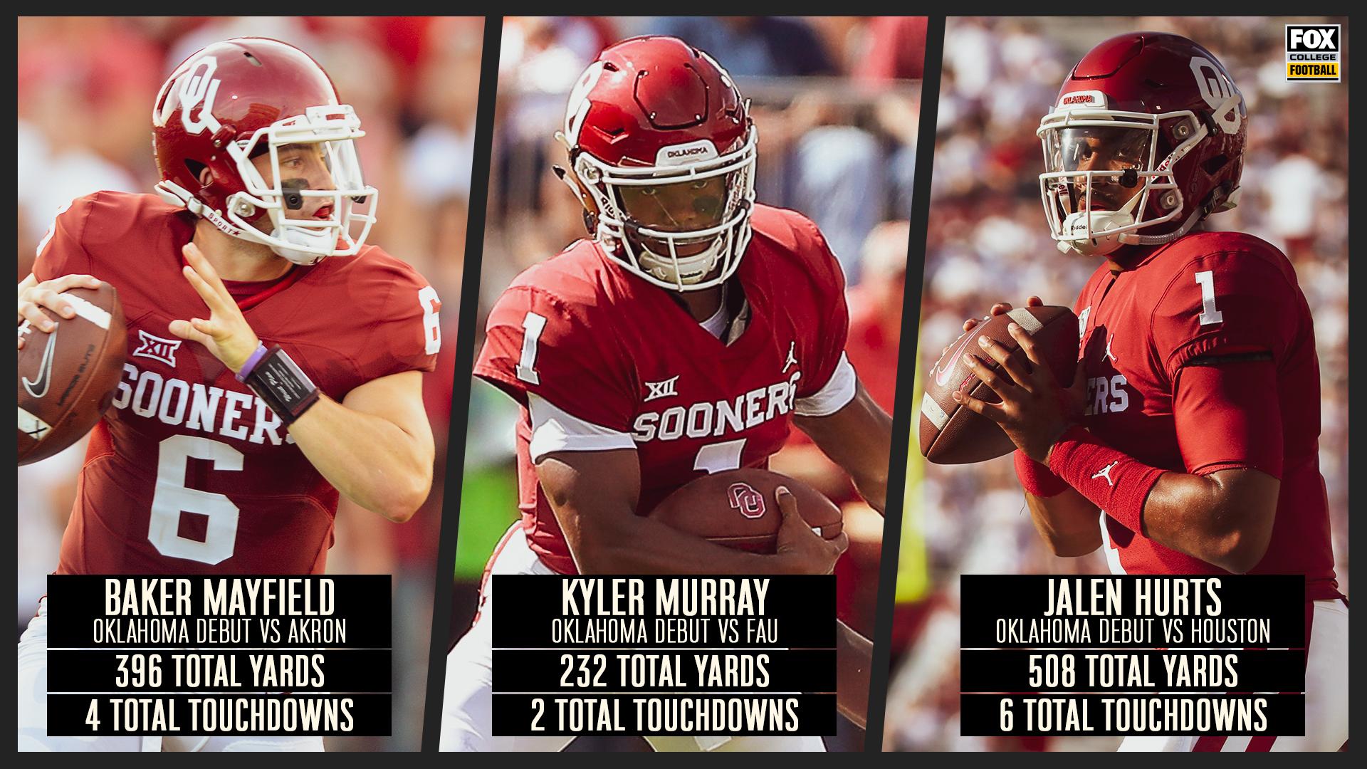 Fox College Football On Twitter Jalen Hurts Had The Same Amount Of Tds In His Oklahoma Debut As Baker And Kyler Did Combined
